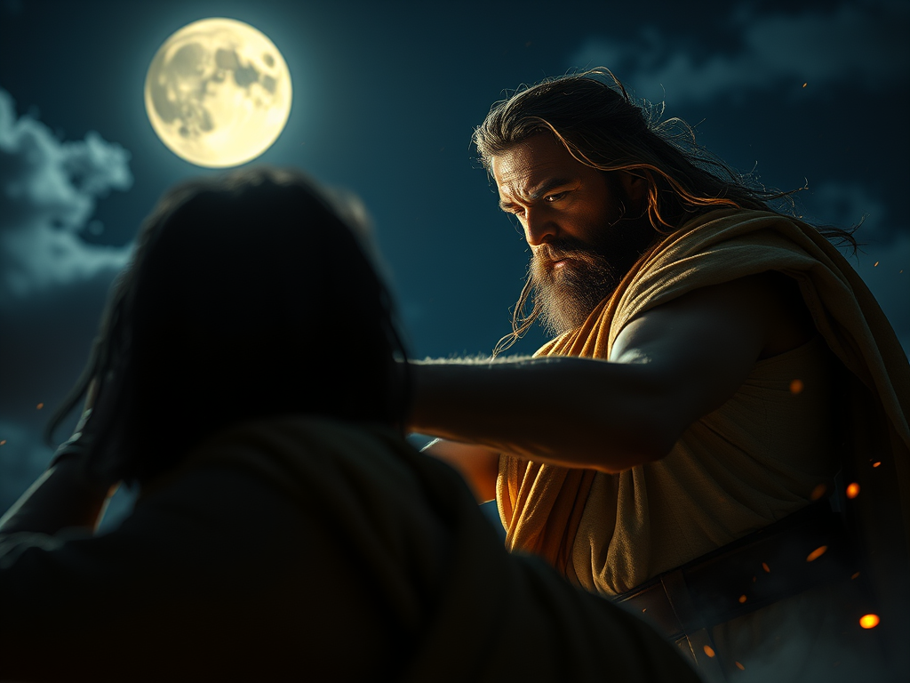 Um dos momentos mais impactantes da vida de Jacó foi sua luta com um ser sobrenatural. Essa luta aconteceu durante a noite, quando ele estava sozinho. Ele lutou até o amanhecer e, ao final, recebeu um novo nome: Israel, que significa “aquele que luta com Deus”.